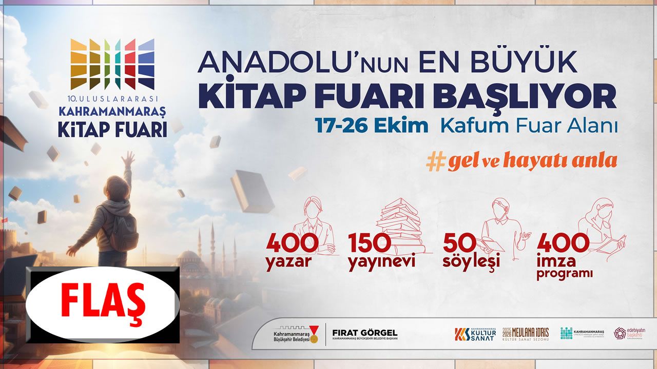 Kahramanmaraş Büyükşehir Belediyesi tarafından bu yıl 10’uncusu düzenlenecek Uluslararası Kahramanmaraş Kitap Fuarı, bugür saat 10.30’da gerçekleştirilecek açılış töreniyle kitapseverlerle buluşacak.KAFUM’dadüzenlenecek fuar, “Anadolu’nun en büyük kitap fuarı” olma özelliğini bu yıl da sürdürerek, on gün boyunca şehre kültürel bir şölen yaşatacak.Kültür ve sanatın buluşma noktası haline gelen fuar, bu yıl da oldukça zengin bir etkinlik takvimiyle dikkat çekiyor. 400 yazar, 150 yayınevi, 50 söyleşi ve 400 imza programı ile dolu dolu geçecek fuarda, her yaşa ve ilgi alanına hitap eden binlerce eser okuyucularla buluşacak.Türkiye’nin dört bir yanından yayınevleri ve yazarların katılım sağlayacağı organizasyonda; edebiyattan tarihe, sanattan akademik yayınlara, çocuk ve gençlik kitaplarından klasik eserlere kadar uzanan geniş bir yelpazede eserler sergilenecek.