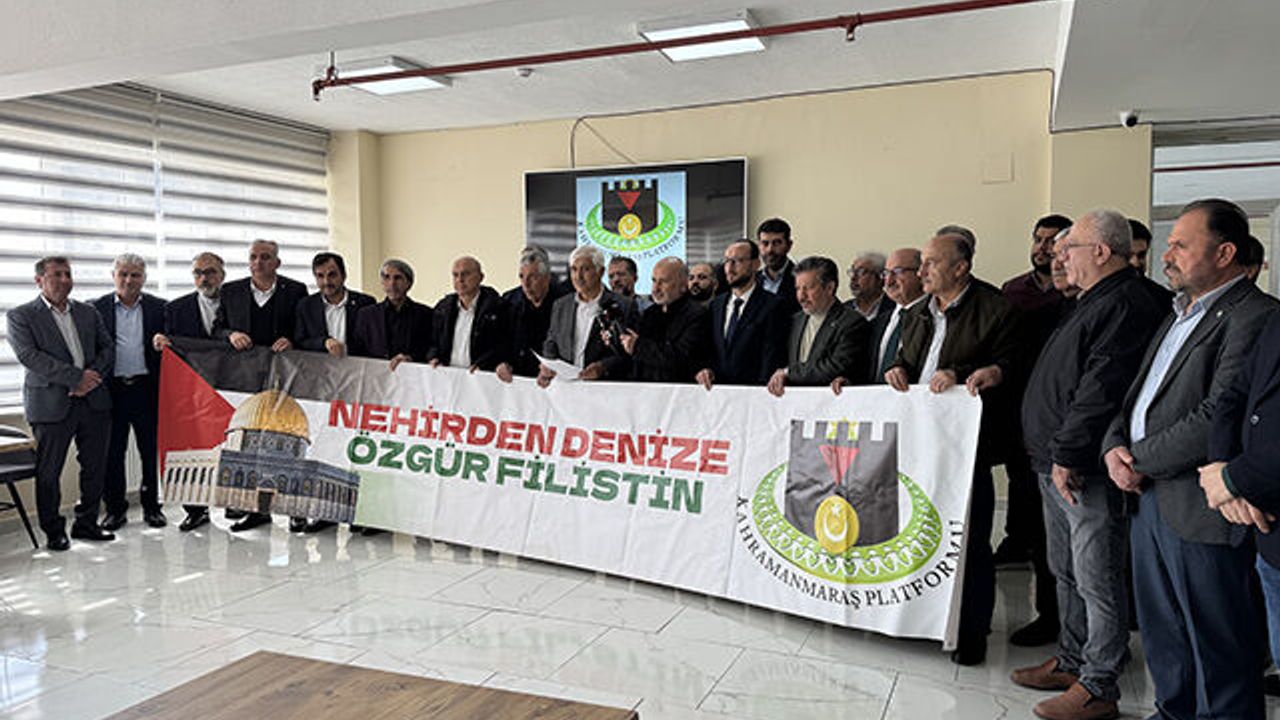 İlim Yayma Cemiyeti binasında bir araya gelen Kahramanmaraş Platformu üyeleri, ABD ve İsrail'e tepki gösteren pankartlar açtı.