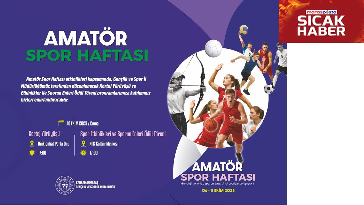 Amatör Spor Haftası etkinlikleri kapsamında, Kahramanmaraş Gençlik ve Spor İl Müdürlüğü öncülüğünde düzenlenecek özel organizasyonla, şehir sporla buluşuyor. 10 Ekim 2025 Cuma günü (bugün) gerçekleştirilecek etkinlikte hem genç sporcular hem de spora gönül vermiş isimler bir araya gelecek.