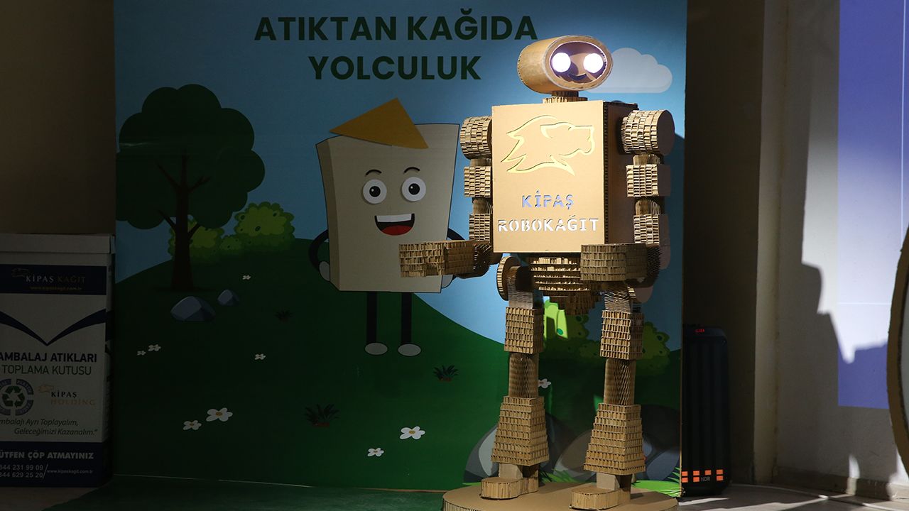GÖKHAN ÇALI / KAHRAMANMARAŞ (AA) - Atık kağıtlardan üretilen karton robot, öğrencilerle buluşarak çevre bilinci ve geri dönüşümün önemine dikkat çekti.