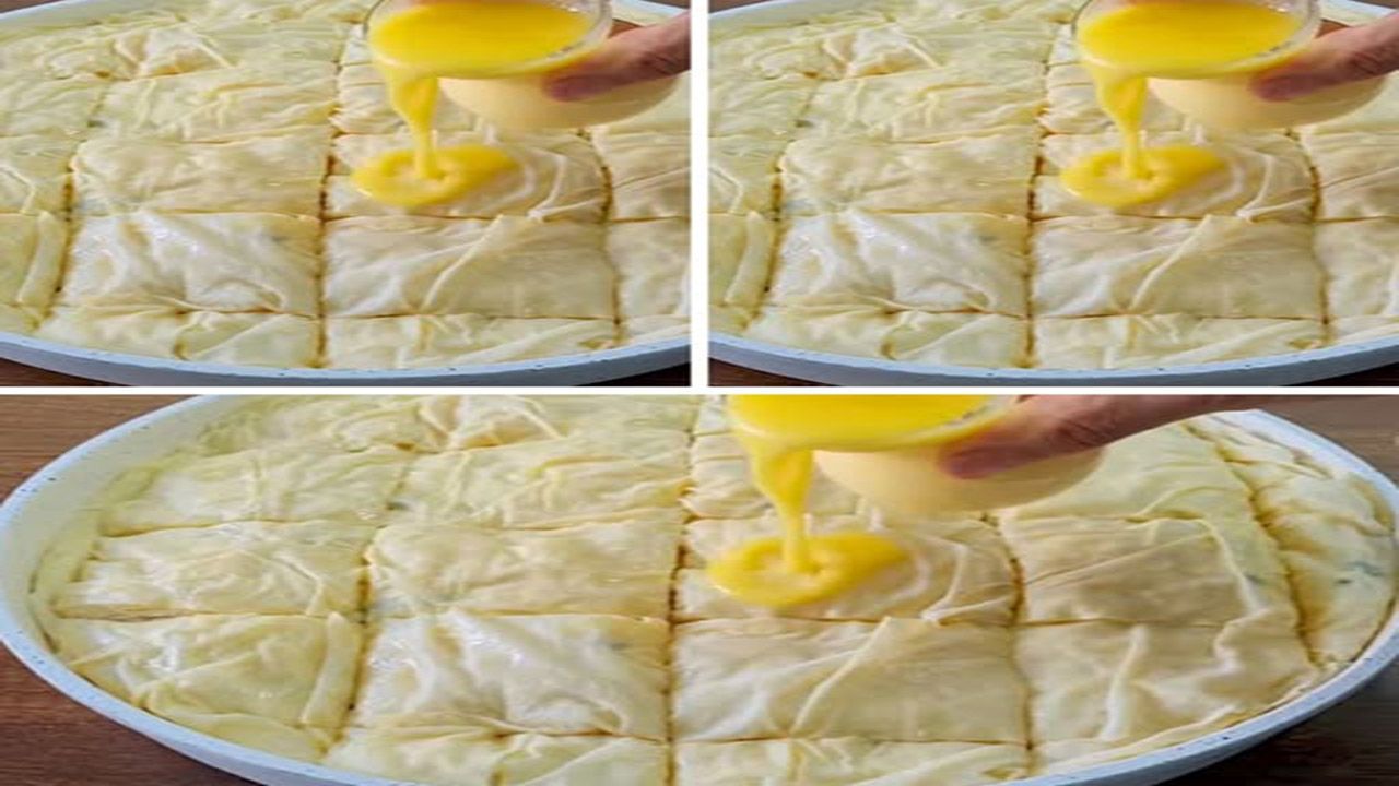 Sonra açtığımız yufkaları iki elimizle tutarak yavaşça suyun içine serer gibi bırakırız. Tahta kaşıkla kenarlardan yufkanın üzerine su atarız ki yufka birbirine yapışmasın. Islanan yufkayı hemen yanımızda bulunan soğuk su dolu kabın içine alırız. Sonra elimizle fazla suyunu sızdırarak yağlamış olduğumuz tepsiye buruşuk bir şekilde yerleştiririz. Soğuk su ılıklaşacağından 3 yufkada bir suyu değiştiririz. Soğuk olmalı. 4. yufkaya da aynı işlemi uyguladıktan sonra arasına peynirli karışımdan yayar, üzerine tereyağını gezdiririz. Her 4 yufkada aynı işlemi yaparız (2 defa). Tereyağını da bu işlemleri yapmak için göz kararı 3’e böleriz. En üst kısmada 4 yufkayı aynı şekilde serdikten sonra üzerini tereyağıyla yağlarız. Pişerken kabarmaması için pişirmeden önce dilim dilim keseriz. 200 derece fırında üzeri kızarıncaya kadar yarım saat pişiririz. Sürenin sonunda pişen su böreği servise hazır. Afiyet olsun!
