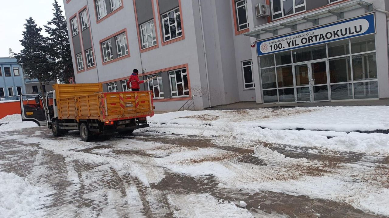 Kahramanmaraş Büyükşehir Belediyesi, etkisini sürdüren olumsuz hava koşullarının günlük yaşamı olumsuz etkilememesi için şehir genelinde karla mücadele çalışmalarını aralıksız sürdürüyor. Kar küreme, tuzlama ve solisyon uygulamalarını yoğun bir şekilde yürüten ekipler, öğrencilerin güvenliği için de okul çevrelerine öncelik veriyor.Öğrencilerin okullarına güvenli bir şekilde ulaşabilmesi ve buzlanma nedeniyle yaşanabilecek kayma ile düşme risklerinin önüne geçilmesi amacıyla, okul çevrelerinde kapsamlı tuzlama ve kar küreme çalışmaları gerçekleştiriliyor. Ekipler, okul girişleri, bahçeler ve yaya geçiş güzergâhlarında buzlanmaya karşı önlem alıyor.Böylece öğrenciler, öğretmenler ve veliler için daha güvenli bir eğitim ortamı sağlanması hedefleniyor.