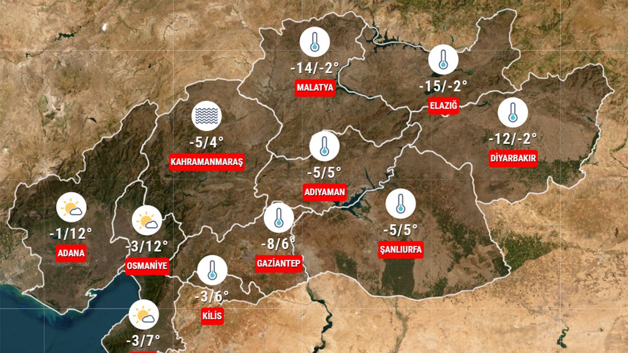 Meteoroloji kaynaklarından alınan bilgilere göre, 6 Şubat depremlerinden etkilenen illerde 3 Ocak 2026 Cumartesi günü çok soğuk hava etkili olacak. Bölgede gece sıcaklıklarının sıfırın altına sert şekilde düşmesi beklenirken, don ve buzlanma riski ön plana çıkıyor.