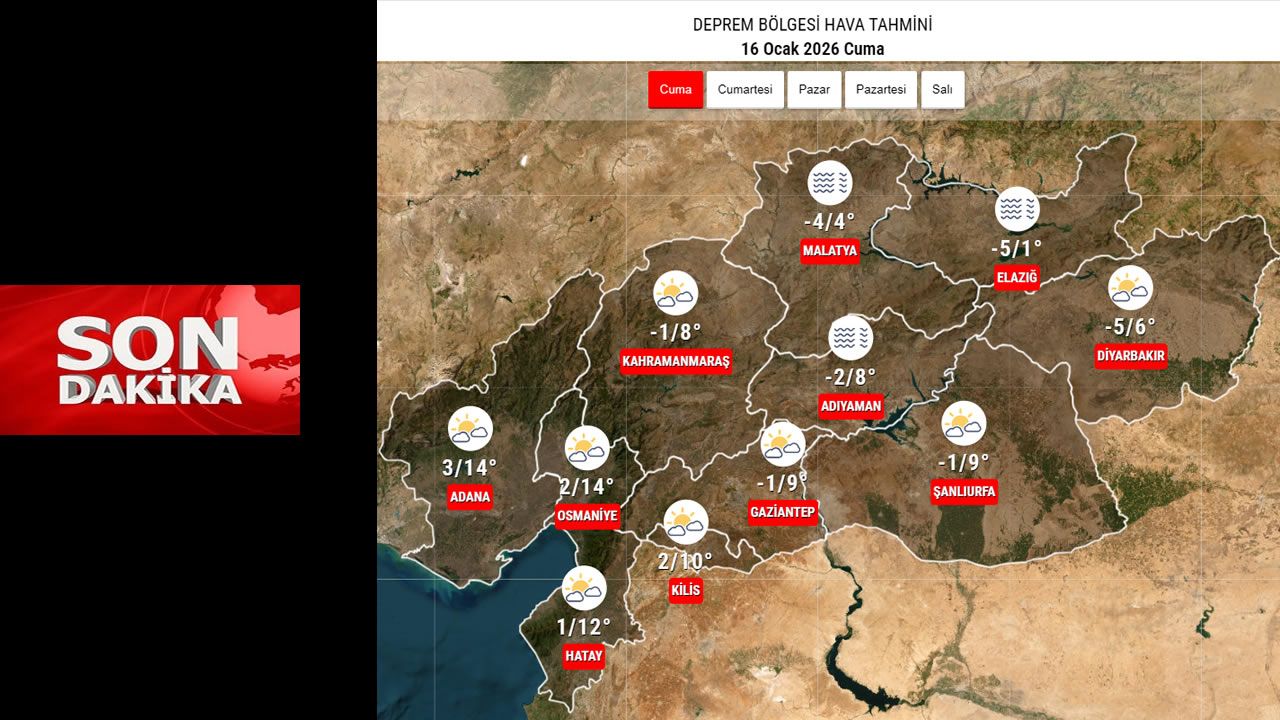 Depremden etkilenen illerde 16 Ocak Cuma günü soğuk hava koşulları etkisini sürdürüyor. Meteorolojik verilere göre bölgede özellikle gece saatlerinde don ve sis riski öne çıkıyor.