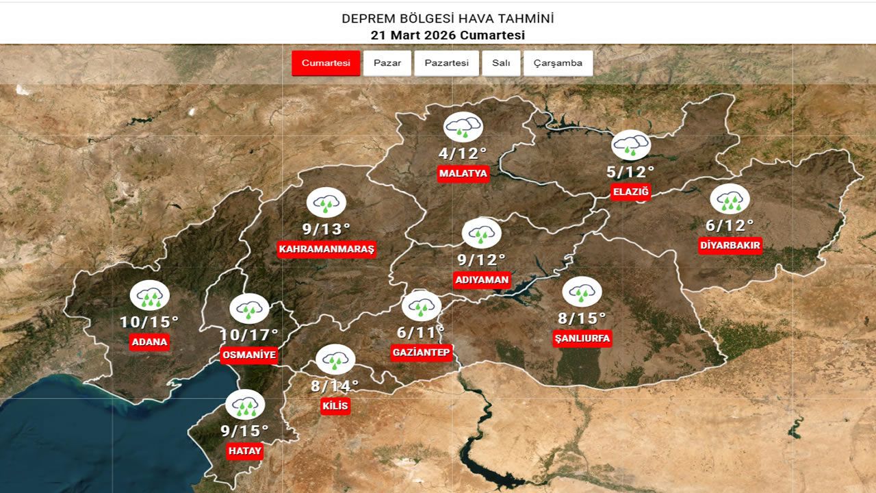 Kahramanmaraş genelinde parçalı ve çok bulutlu bir hava ile birlikte gün boyu aralıklı sağanak yağış bekleniyor. Sıcaklıklar 9 ila 13 derece arasında değişecek.
