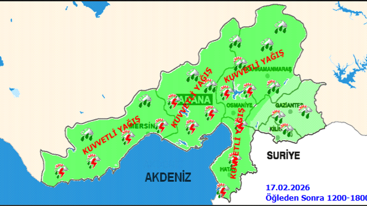 - Kahramanmaraş genelinde kuvvetli ve yer yer çok kuvvetli sağanak