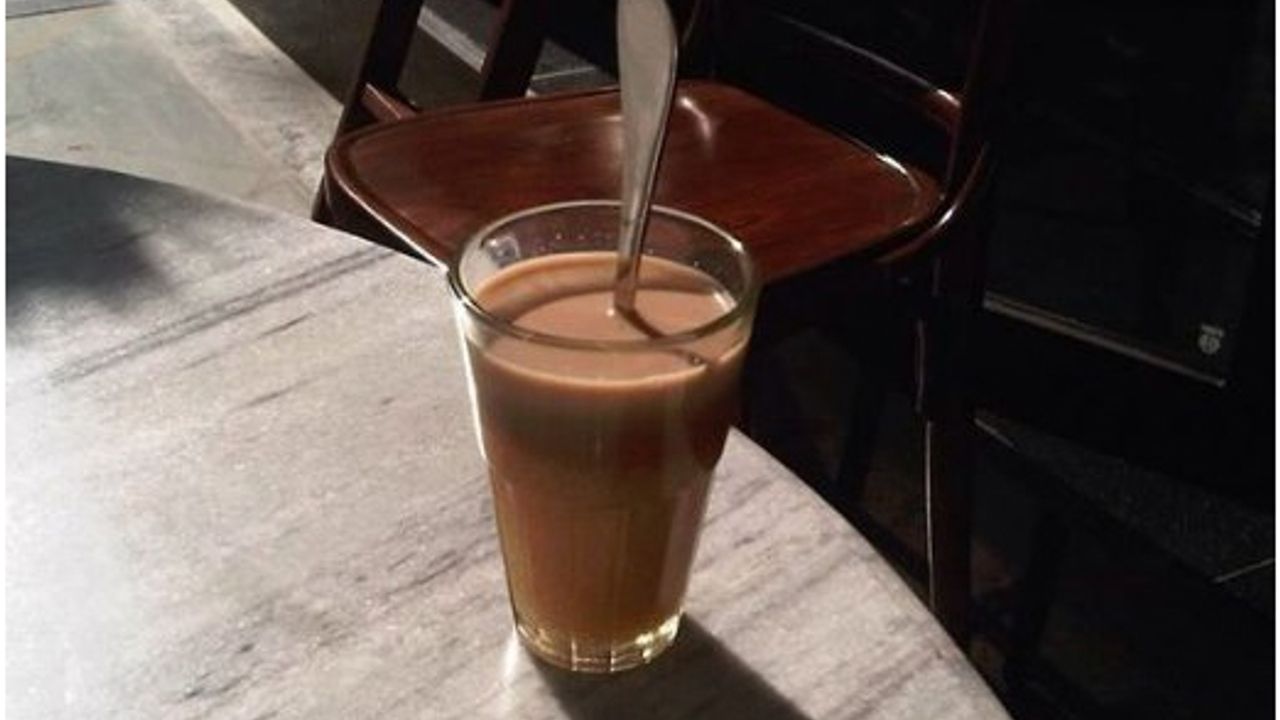 Bunu ilk gördüğümde ben de şok oldum. Bana çayı bitirirsem para ödememe gerek olmadığını söylediler. Ben de kararımı verdim ve meydan okumalarını kabul ettim. İlk yudumu aldım ve tamamen şok oldum. Tamamen şekerdi, başka hiçbir şey yoktu. Bir şekilde çayın 1/3'ünü içmeyi başardım ve kendimi teslim ettim. Şimdi kaşığın neden 90 derecelik açıyla sıkıştığını anladım. Bunun tek sebebi çaydaki aşırı miktarda şekerdi. %40 şeker, %50 süt ve %10 çaydı.