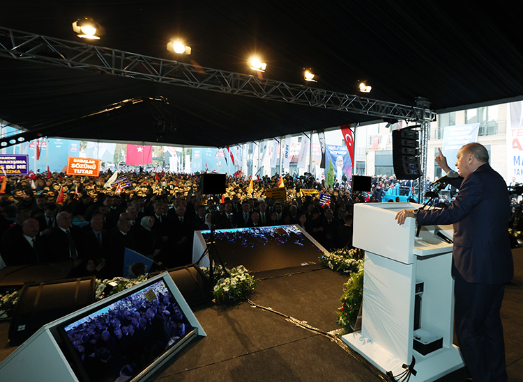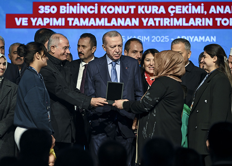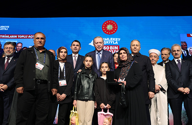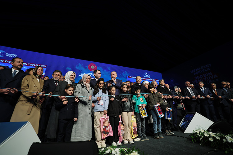 Cumhurbaşkanı Erdoğan, "(Deprem bölgesi) 11 ilimizde toplam 350 bin 178 bağımsız bölümün anahtarlarını hak sahibi kardeşlerimize takdim etmiş oluyoruz." dedi.