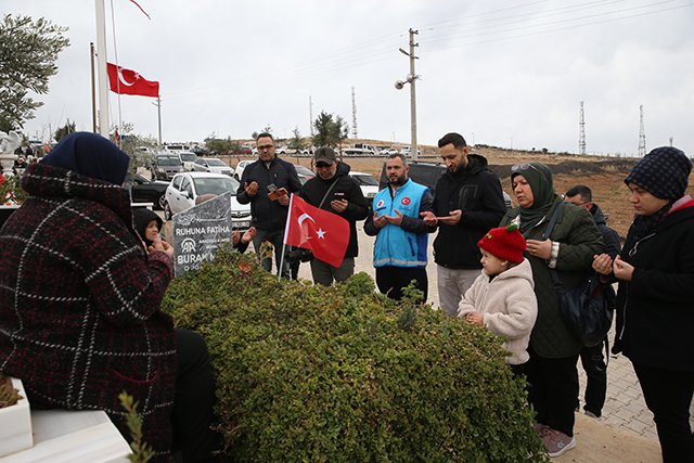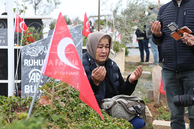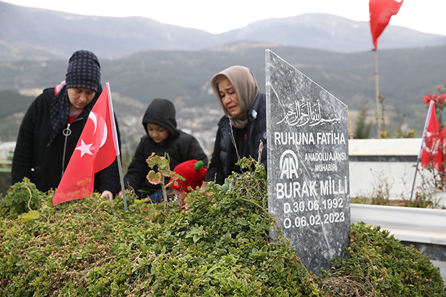 Kahramanmaraş merkezli 6 Şubat 2023'teki depremlerde Hatay'ın İskenderun ilçesindeki evinin yıkılması sonucu eşi ve 5 aylık bebeğiyle yaşamını yitiren Anadolu Ajansı (AA) muhabiri Burak Milli, mezarı başında anıldı.