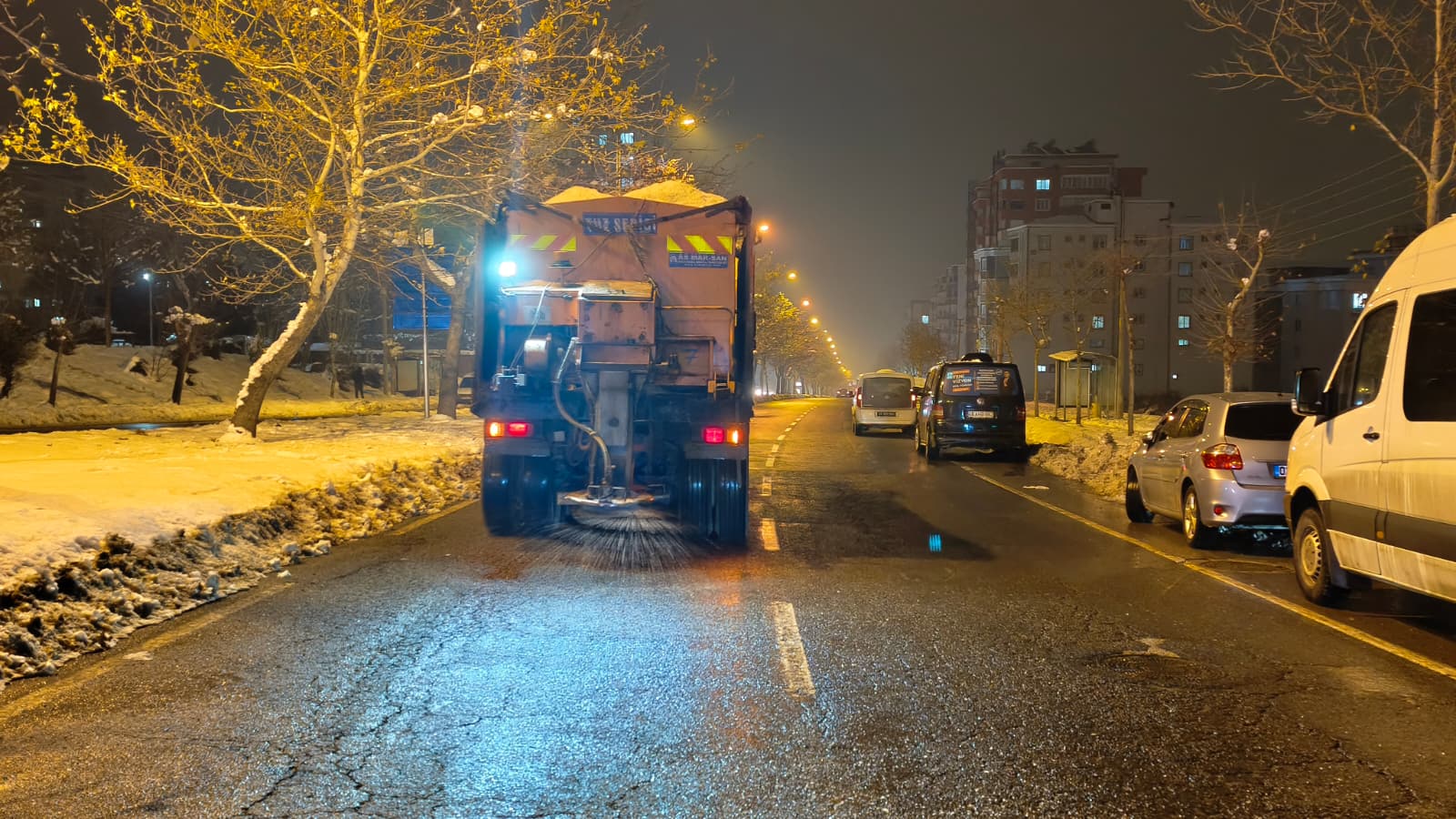 Büyükşehir Belediyesi, hava sıcaklıklarının eksi derecelere düştüğü bugünlerde meydana gelebilecek buzlanmanın önüne geçmek için arterlerde tuzlama ve solisyon uygulamalarını durmaksızın sürdürüyor.