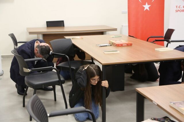 Deprem Anı, Çök-Kapan-Tutun Tahliye Tatbikatı