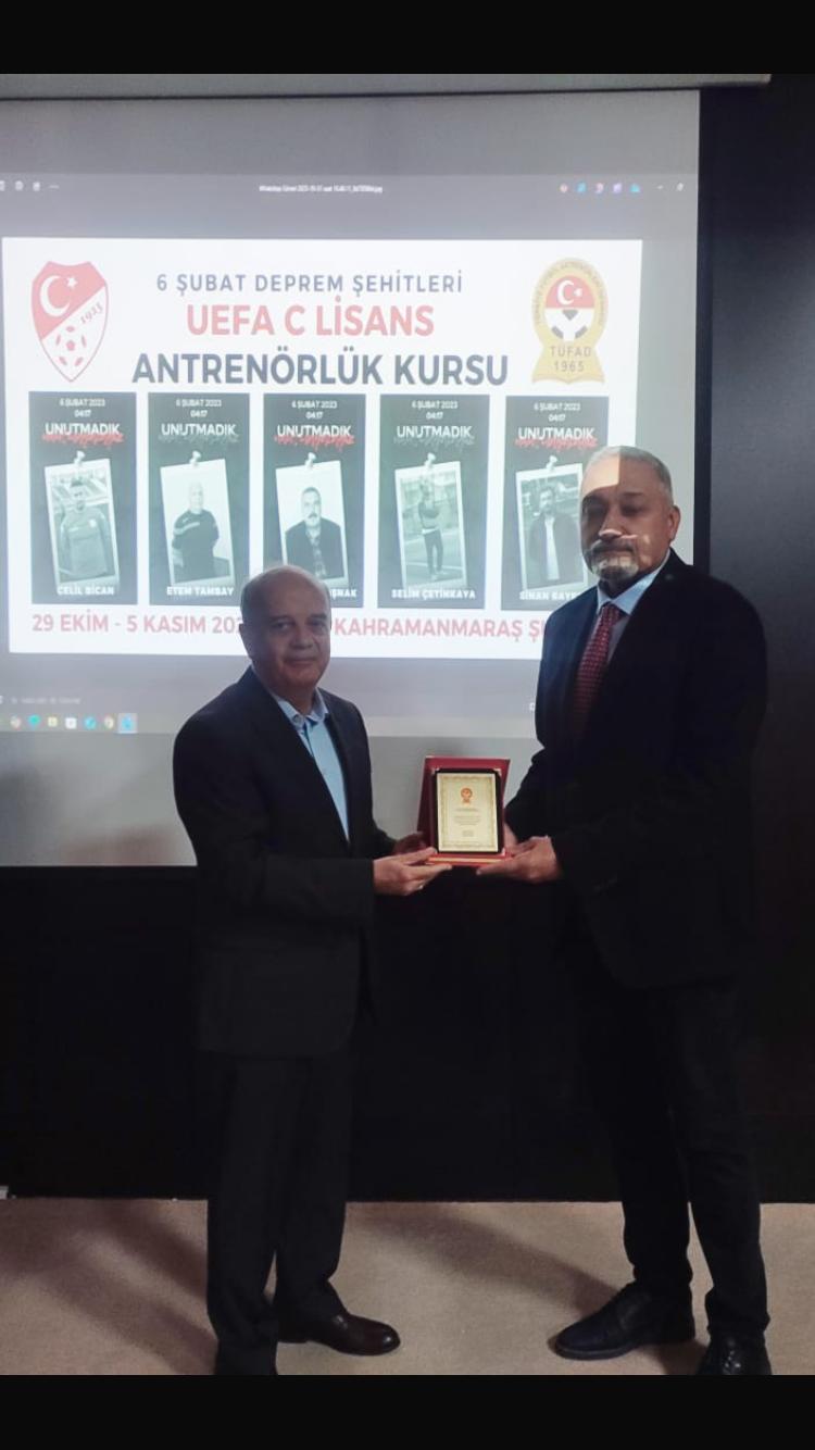 Kahramanmaraş’ta Türkiye Futbol Federasyonu (TFF) ile Türkiye Futbol Antrenörleri Derneği (TÜFAD) iş birliğinde düzenlenen “6 Şubat Deprem Şehitleri UEFA C Lisans Antrenörlük Kursu” başarıyla tamamlandı.