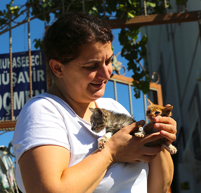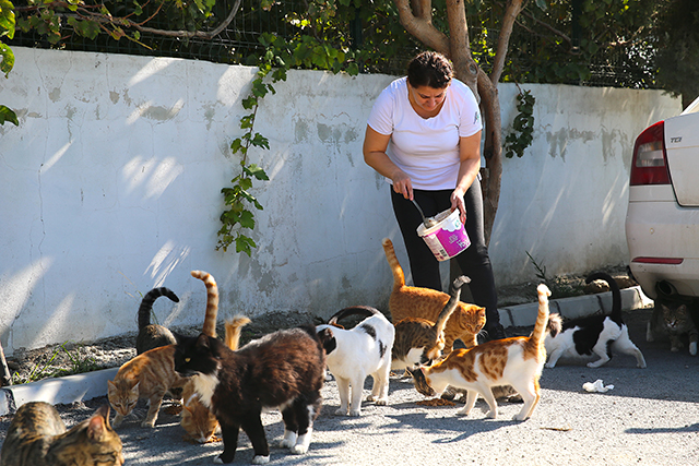 Hatay'da çok sayıda sahipsiz kediyi düzenli olarak besleyen iki çocuk annesi Canan Göçmen: "Sahiplendirmeyi çok istiyorum çünkü gerçekten bir eve, sevgiye ve sevilmeye ihtiyaçları var"