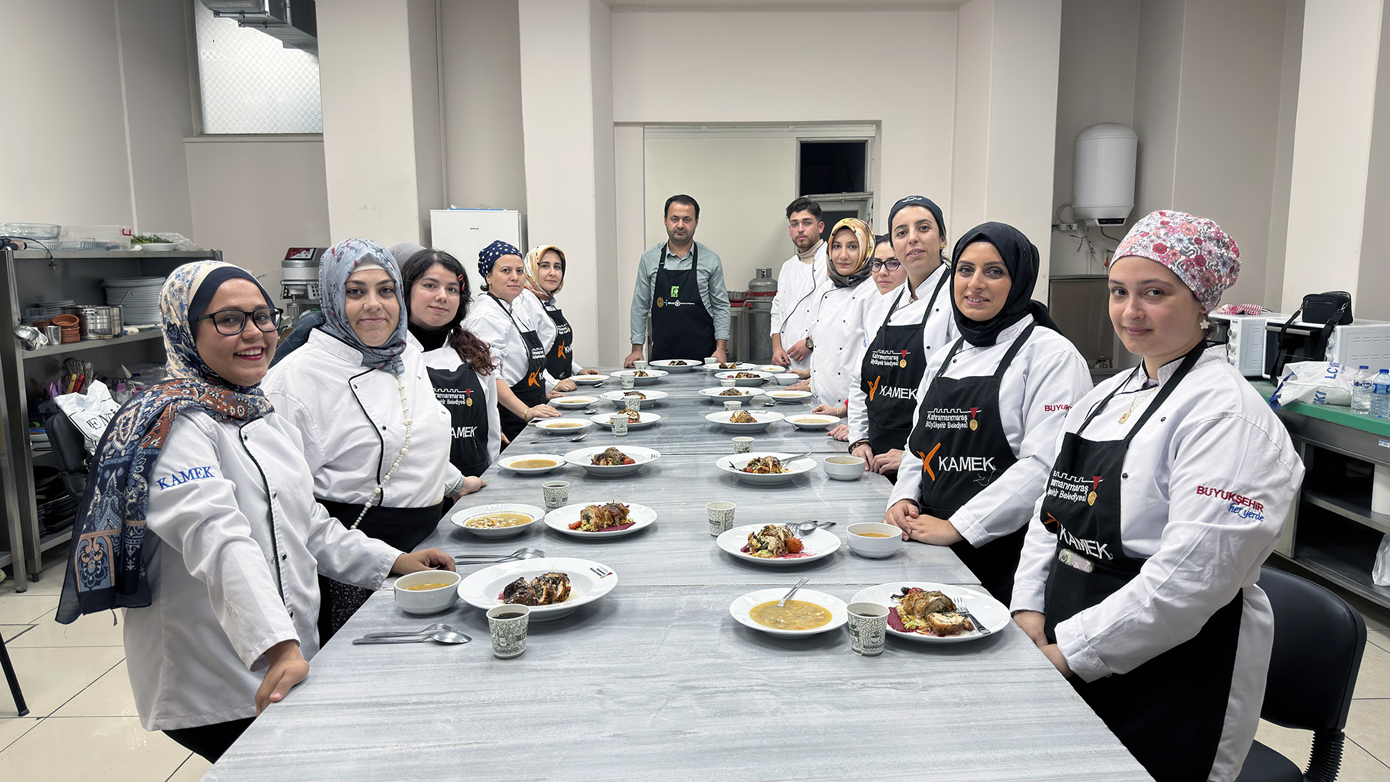 Büyükşehir Belediyesinin Meslek Edindirme Kursları’nda verilen aşçılık eğitimlerinde kursiyerler, geleneksel Türk mutfağından dünya mutfağına kadar geniş bir yelpazede yemek hazırlama tekniklerini öğreniyor. KAMEK’te yetişen kursiyerler, gastronomi sektöründepek çok alanda çalışma fırsatı elde edebiliyor.