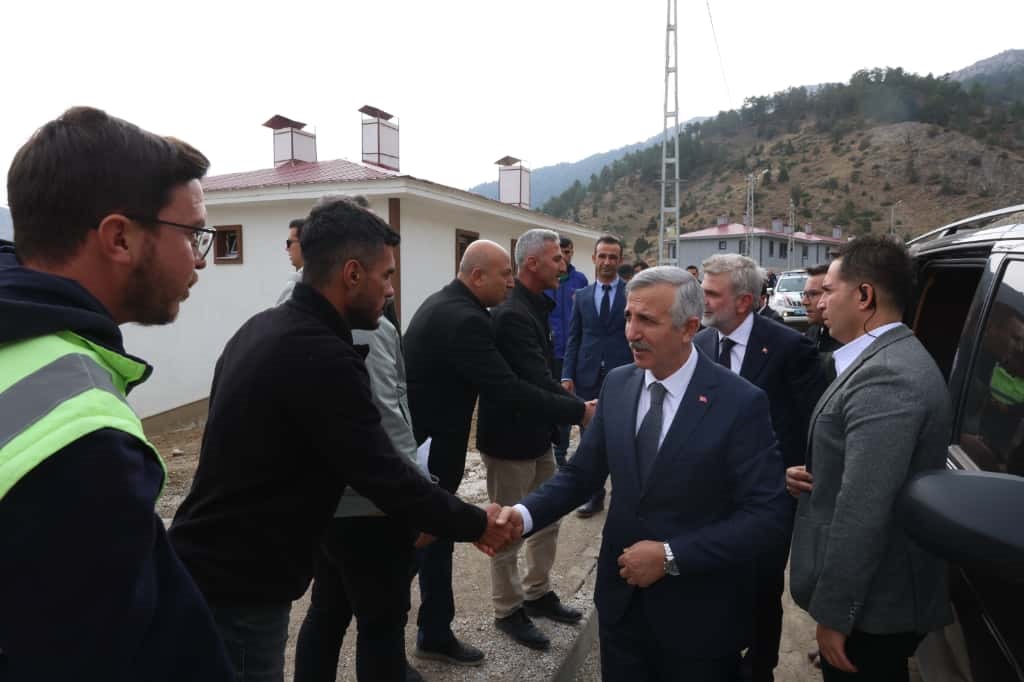 Kahramanmaraş Valisi Mükerrem Ünlüer, Büyükşehir Belediye Başkanı Fırat Görgel ve beraberindeki heyet ile birlikte deprem sonrası vatandaşlarımız için inşa edilen kalıcı köy konutlarını ziyaret ederek incelemelerde bulundu.