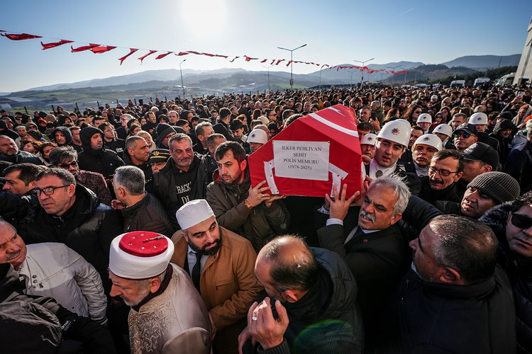 Yalova'da terör örgütü DEAŞ'a yönelik operasyonda açılan ateş sonucu şehit olan polis memurları Turgut Külünk, Yasin Koçyiğit ve İlker Pehlivan son yolculuklarına uğurlandı.