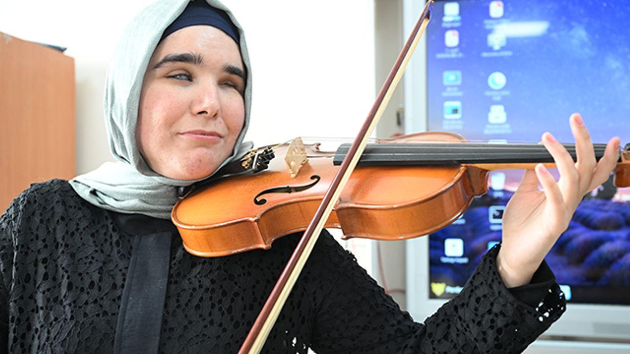 "Ortaokulda kabartma nota öğrendim. Biz görme engelliler Braille alfabesi kullanıyoruz. Müziğe oyuncak piyanolarla başladım. Çevremdekiler sesimin güzel olduğunu söylerdi. Ortaokulda müzik öğretmenim konservatuvara gitmemi tavsiye etti. Şu an keman, piyano ve gitar çalıyorum. Öğretmen olmak hep hayalimdi. Başta başka branşları düşünsem de müziğe yönelince eğitimime bu yönde devam ettim."