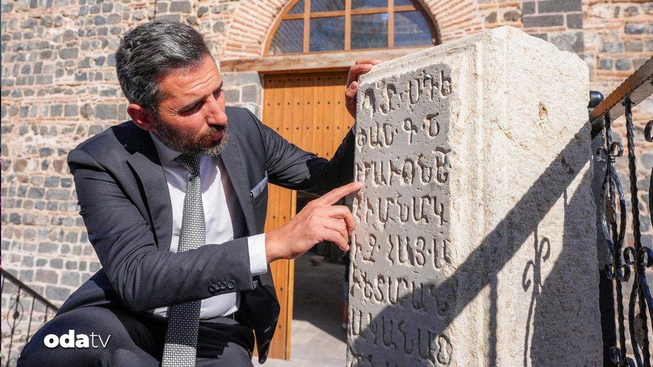 "Müdürlüğümüze gelen bir telefon ihbarıyla Hani ilçemize gittik. İlçede 6 Şubat Kahramanmaraş merkezli depremlerde zarar gören bazı evlere yönelik yıkım çalışması yapıldığını gördük. Yıkım ve kazı esnasında bir tarihi esere rastlanılmış. İnşaat sahasında yaptığımız araştırmada bir mezar kapağı olduğunu gözlemledik. Yerinden alıp İçkale'ye getirdik. Mermerden olan mezar kapağını 10 Ağustos'ta açılışını yaptığımız Saint George Kilisesi önünde sergilemek için hazırlık yaptık."