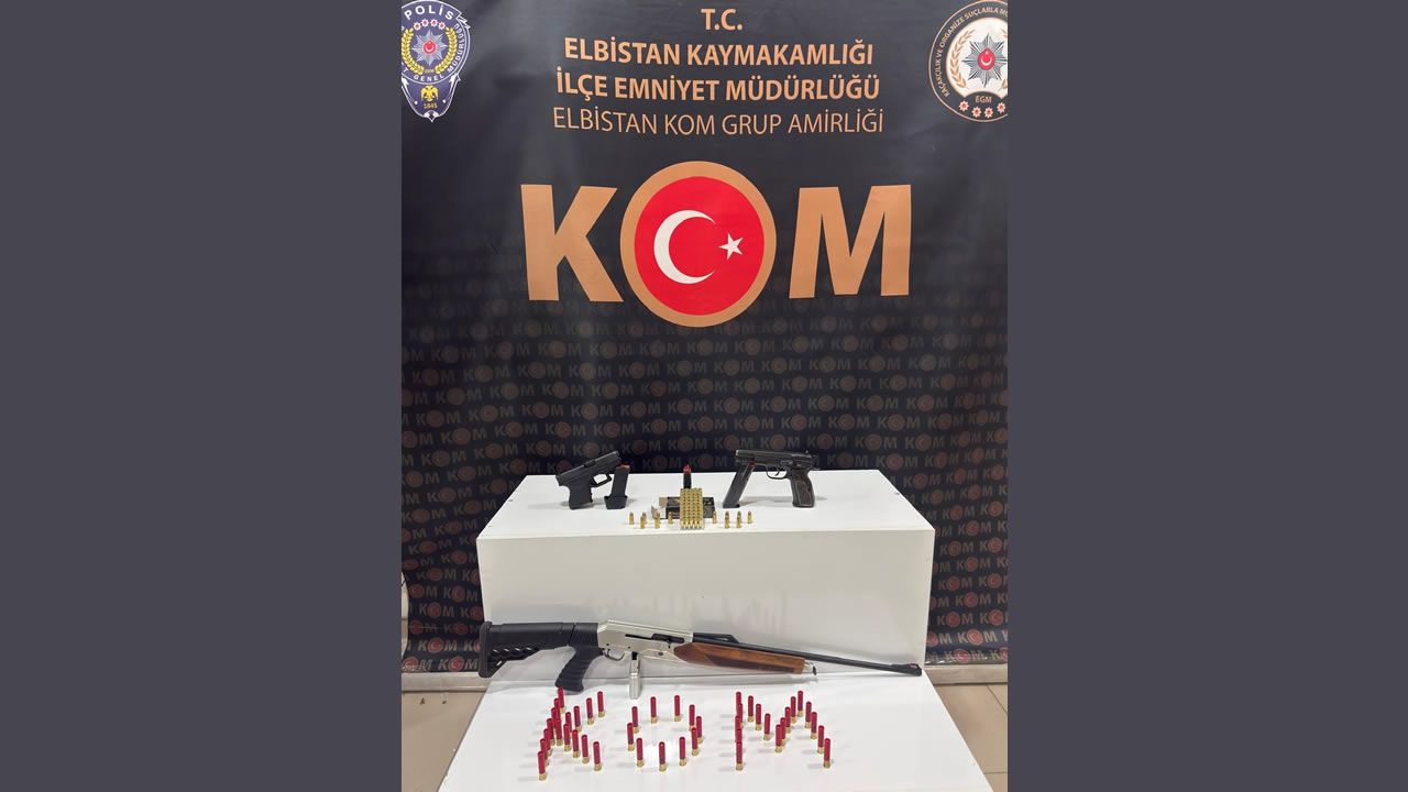 Afşin ilçesinde belirlenen adreste yapılan aramada, ruhsatsız 2 tabanca ile 1 yivsiz tüfek, 2 şarjör ve 105 fişek ele geçirildi.