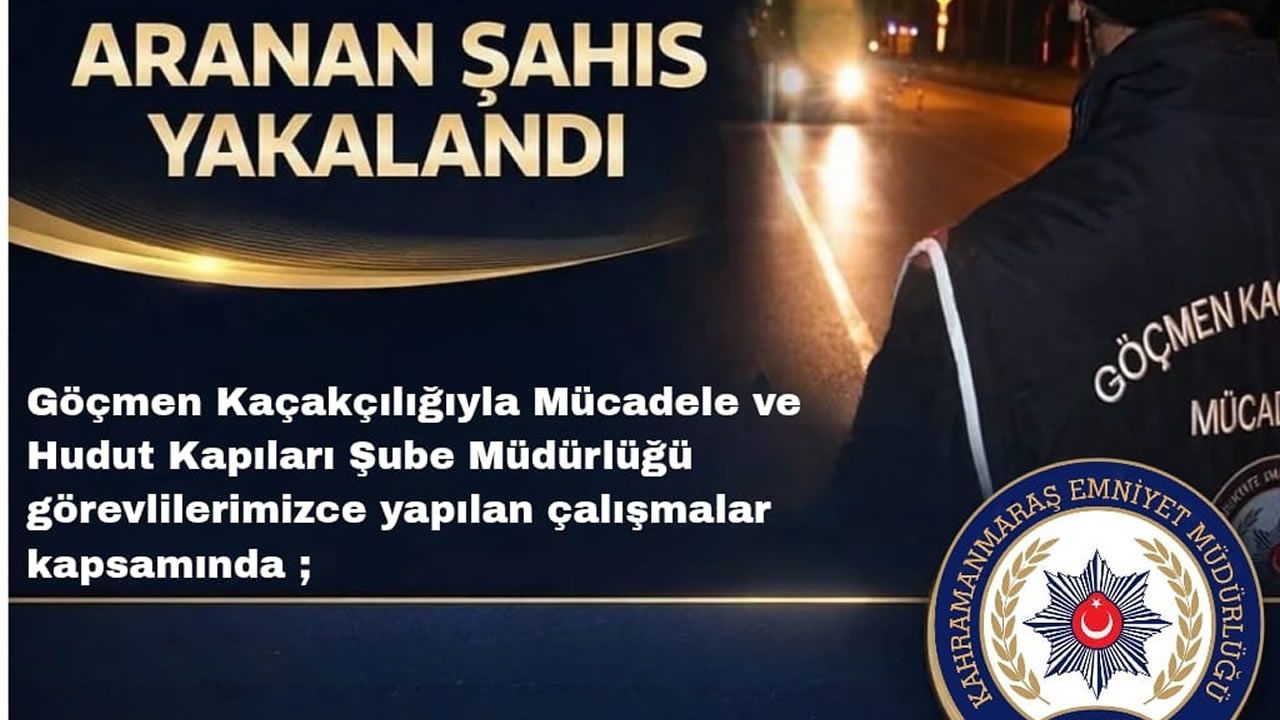 Kahramanmaraş İl Emniyet Müdürlüğü Göçmen Kaçakçılığıyla Mücadele ve Hudut Kapıları Şube Müdürlüğü ekiplerince yürütülen çalışmalar kapsamında, hakkında kesinleşmiş hapis cezası bulunan bir şahıs yakalandı.