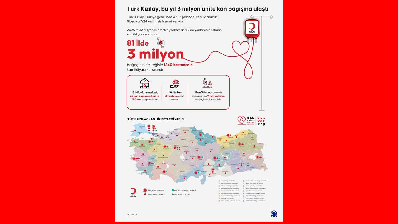 2025 yılı boyunca Kızılay ekipleri yaklaşık 32 milyon kilometre yol kat ederek milyonlarca hastaya umut oldu. Yapılan bağışlar sayesinde Türkiye genelinde 1.140 hastanenin kan ihtiyacı karşılanırken, Kahramanmaraş’taki sağlık kuruluşları da bu destekten önemli ölçüde faydalandı.