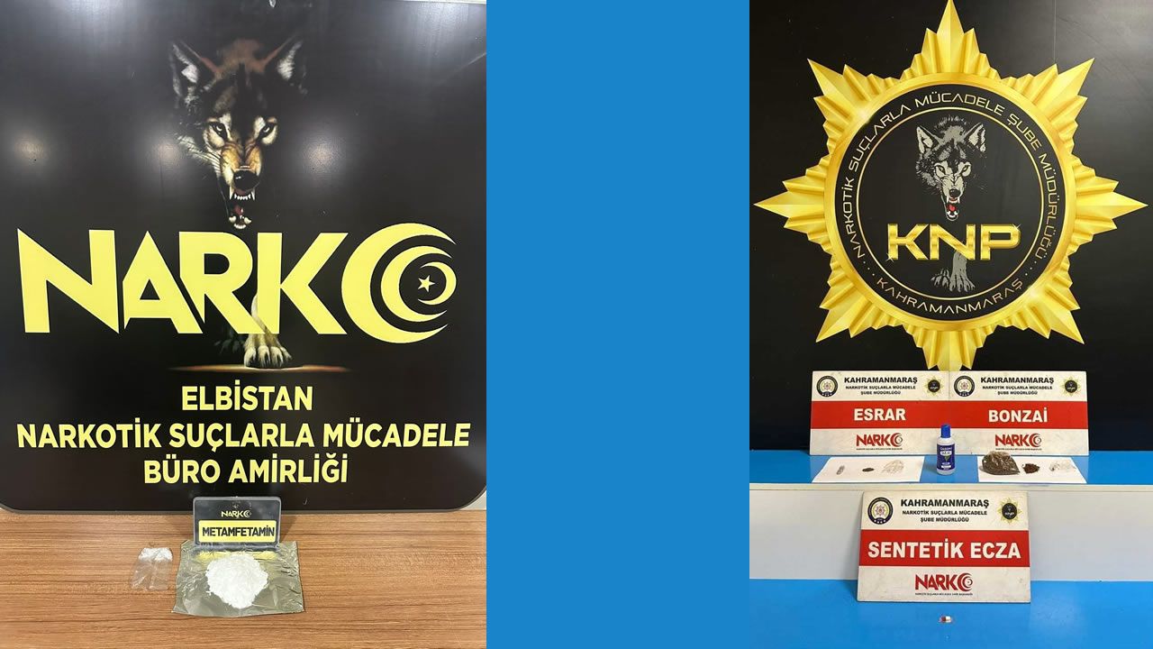 Öte yandan Narkotik Suçlarla Mücadele Şube Müdürlüğü Elbistan Büro Amirliği ekiplerince aynı tarihte yürütülen ayrı bir çalışmada ise 43,75 gram metamfetamin maddesi ele geçirildi.