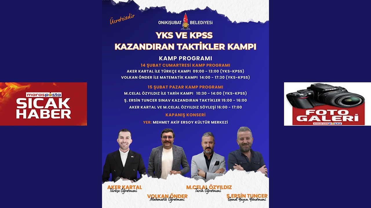 Hanifi Toptaş başkanlığındaki Onikişubat Belediyesi, eğitimden kültüre, spordan sosyal destek projelerine kadar her alanda gençlerin yanında olmaya devam ederken, YKS ve KPSS Kazandıran Taktikler Kampı ile bir kez daha örnek bir belediyecilik anlayışı sergiliyor.