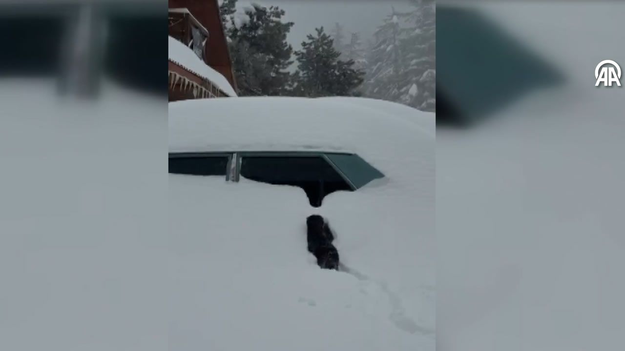 Bölgede araçlar kar altında kalırken, kar üzerinde yürümekte zorlanan bir kedinin verdiği mücadele dikkat çekti.