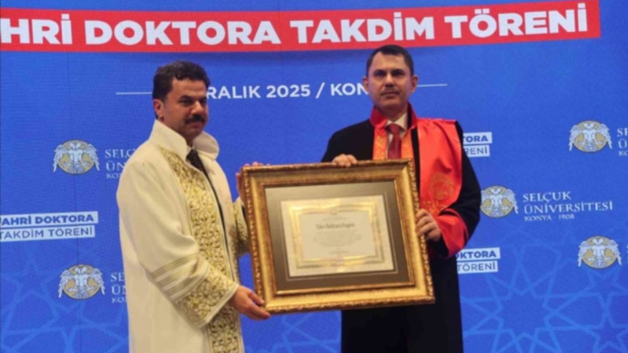 KONYA (AA) - Çevre, Şehircilik ve İklim Değişikliği Bakanı Murat Kurum'a, mezunu olduğu Selçuk Üniversitesi'nde fahri doktora unvanı takdim edildi.
