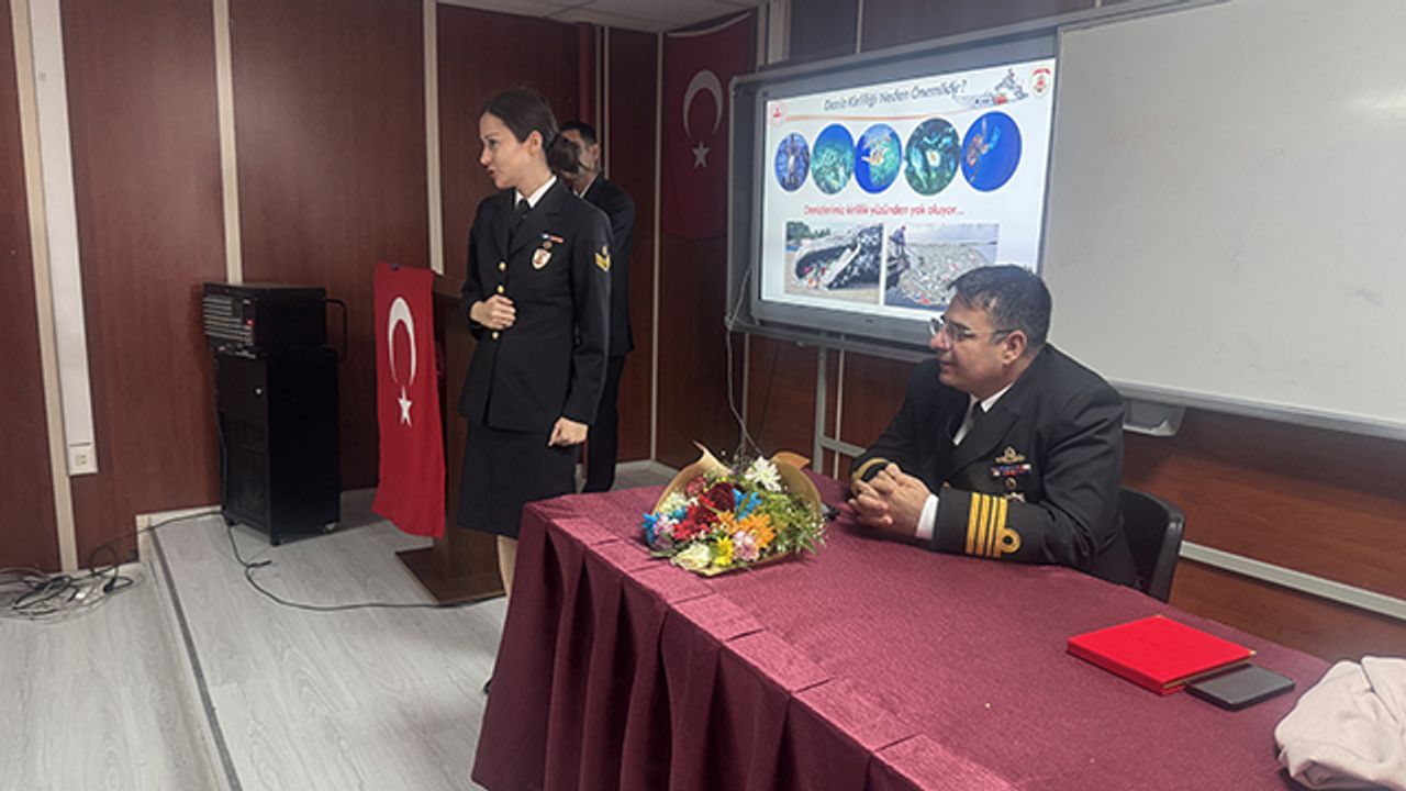 Fatih Anadolu Lisesi Konferans Salonu'nda öğrencilere, Sahil Güvenlik Komutanlığının yürüttüğü faaliyetler, Türkiye'nin denizlerdeki stratejik konumu, sahil güvenliğinin önemi ve denizcilikte sürdürülebilirlik konularında bilgilendirme yapıldı.