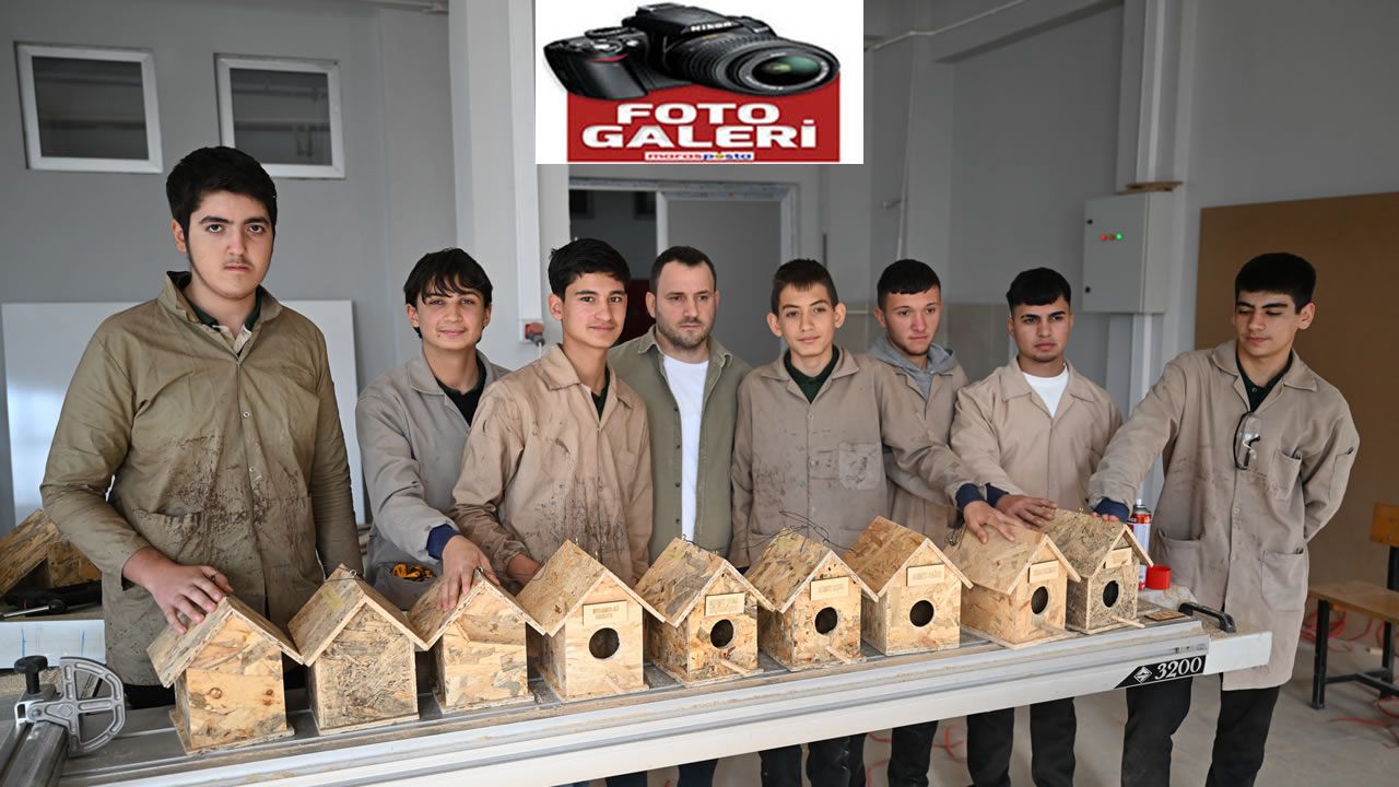 İdarenin de desteğini alan öğrenciler, okulun marangoz atölyesinde yaptıkları kuş evlerine öğretmenlerinin ve arkadaşlarının isimlerini işledi.