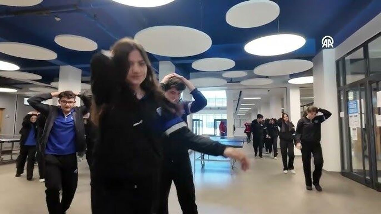 Sirenin sona ermesinin ardından öğrenciler, AFAD personeli ve öğretmenler eşliğinde okuldan tahliye edilerek güvenli alana götürüldü.