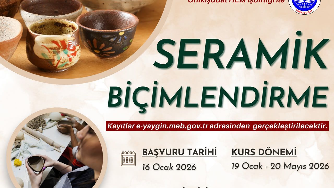 Onikişubat Belediyesi, kadınların sosyal, kültürel ve ekonomik hayatta daha aktif rol almasını destekleyen projelerine bir yenisini daha ekliyor. Hayat boyu öğrenme anlayışıyla özellikle kadınlara yönelik mesleki ve sanatsal eğitimlere büyük önem veren Onikişubat Belediyesi, Halk Eğitim Merkezi iş birliğiyle Seramik Biçimlendirme Kursunu hayata geçiriyor.
