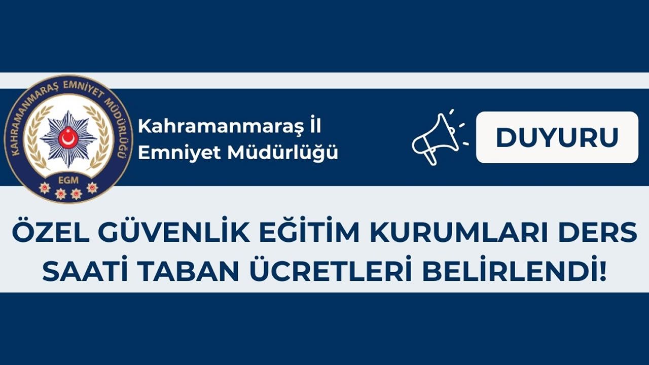 Kahramanmaraş Valiliği İl Özel Güvenlik Komisyonu tarafından alınan karar doğrultusunda, il genelinde faaliyet gösteren özel güvenlik eğitim kurumlarının 2026 yılı ders saati taban ücretleri açıklandı.