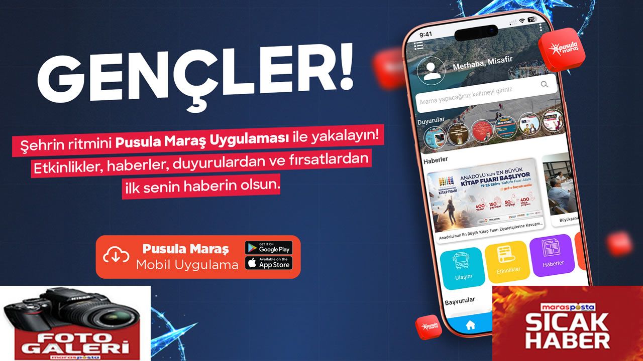 Gençlerin hizmetine sunulan Pusula Maraş mobil uygulaması, tüm akıllı cihazlarda ücretsiz olarak indirilebiliyor. Uygulama İOS cihazlarda AppStore’denhttps://apps.apple.com/lk/app/pusula-maraş/id1630774367bağlantısıyla, Android cihazlarda ise Play Store üzerindenhttps://play.google.com/store/apps/details?id=com.kahramangenclik.com&hl=tr&gl=USbağlantısıyla indirilebiliyor.