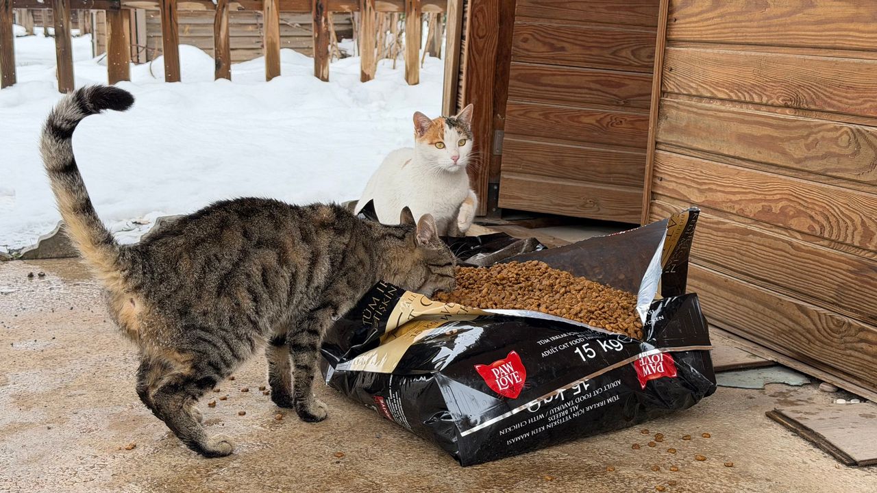 Büyükşehir Belediyesi, olumsuz hava koşullarında yiyecek bulmakta zorlanan sokak hayvanları için şehrin muhtelif noktalarına mama bırakarak can dostların beslenmesini sağlıyor.