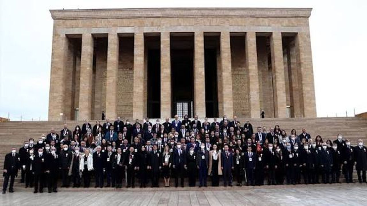 Tekin başkanlığındaki Bakanlık bürokratları ile öğretmenlerden oluşan heyet, Aslanlı Yol’dan yürüyerek Büyük Önder Gazi Mustafa Kemal Atatürk’ün mozolesine geldi.