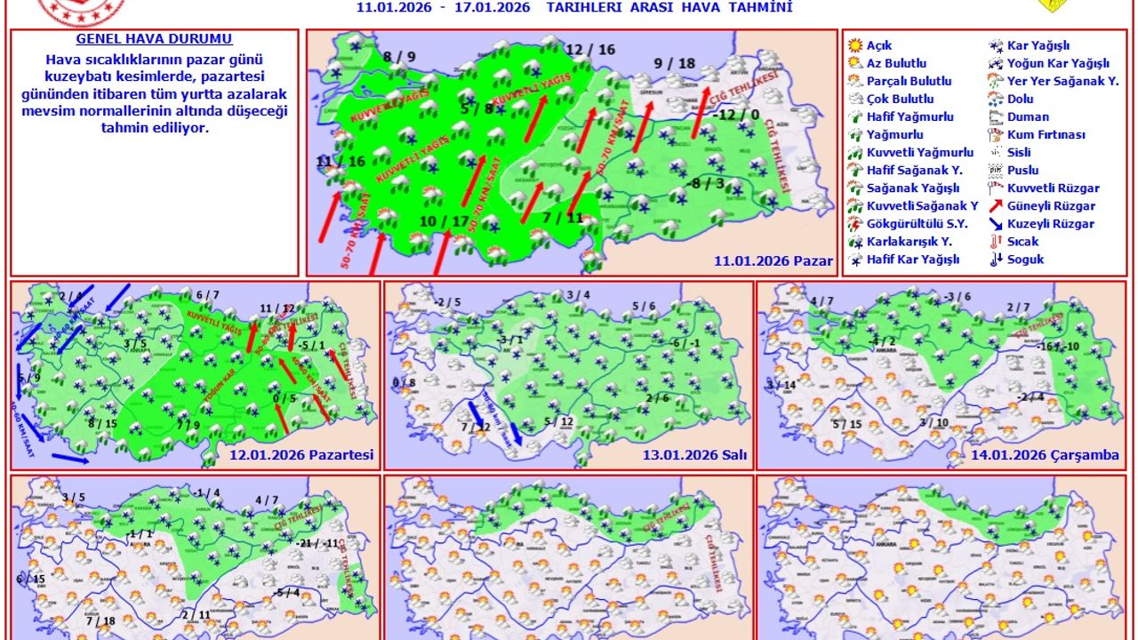 Meteoroloji Genel Müdürlüğü’nün son değerlendirmelerine göre Türkiye genelinde hava durumu sertleşiyor. Ülke genelinin çok bulutlu geçmesi beklenirken, özellikle güney, iç ve batı kesimlerde yağışlar etkisini artıracak.