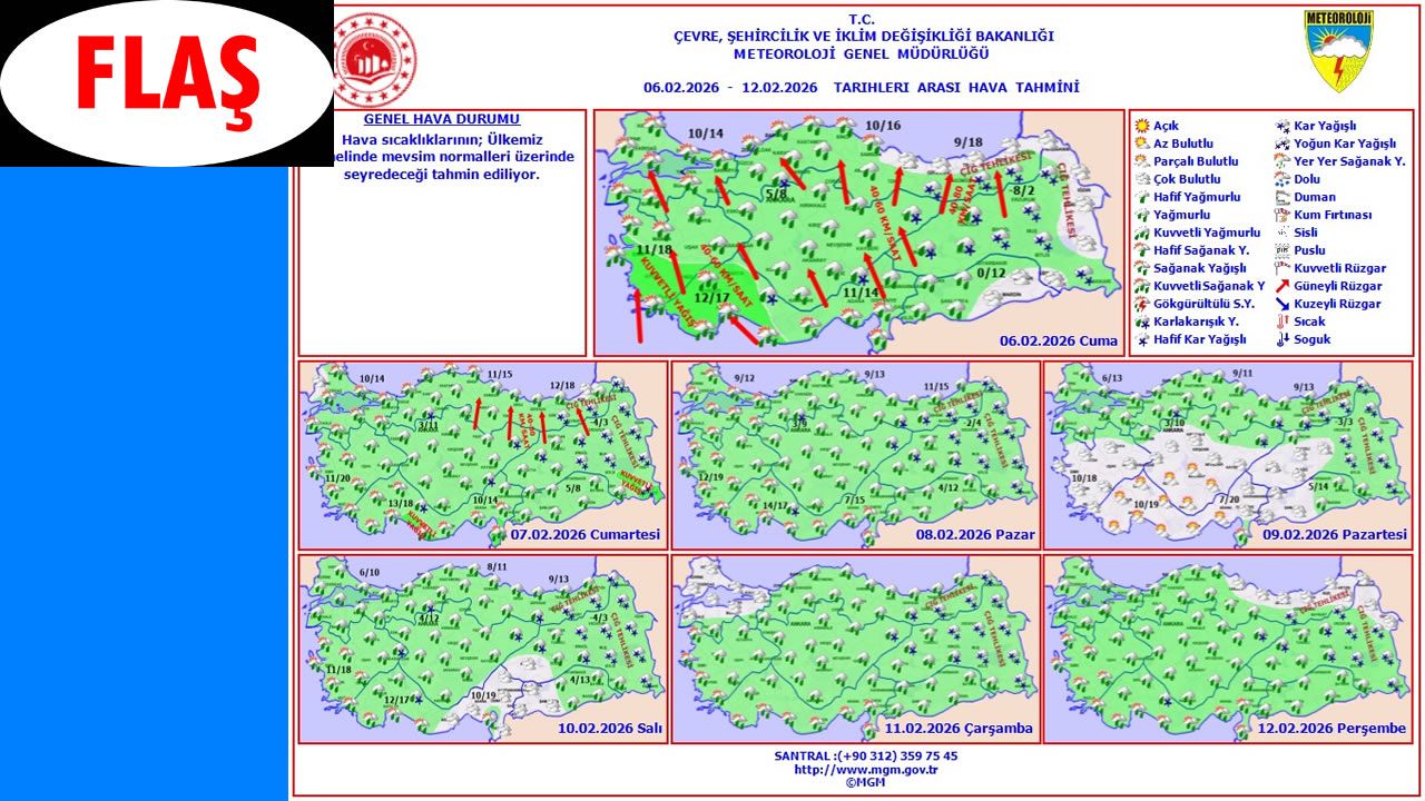 Meteoroloji Genel Müdürlüğü’nün 6–12 Şubat tarihlerini kapsayan son değerlendirmelerine göre, Türkiye genelinde yağışlı ve yer yer soğuk hava dalgası etkisini artıracak. Özellikle kuzey, iç ve doğu kesimlerde karla karışık yağmur ve kar yağışı beklenirken, batı ve kıyı bölgelerde sağanak ve gök gürültülü yağışlar öne çıkıyor.