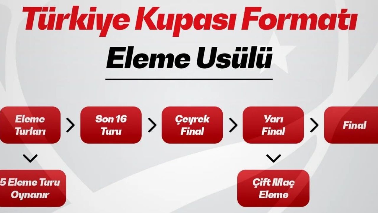 Kupada sistem; 5 eleme turu, son 16 turu, çeyrek final, yarı final ve final aşamalarından oluşacak. Yarı final müsabakaları çift maç eleme usulüyle oynanacak. Diğer tüm turlar ise tek maç üzerinden gerçekleştirilecek. Türkiye Kupası’nın eleme turları ve final aşaması toplam 10 kupa haftasında tamamlanacak. Böylece organizasyon daha planlı ve takvimle uyumlu bir şekilde yürütülecek.