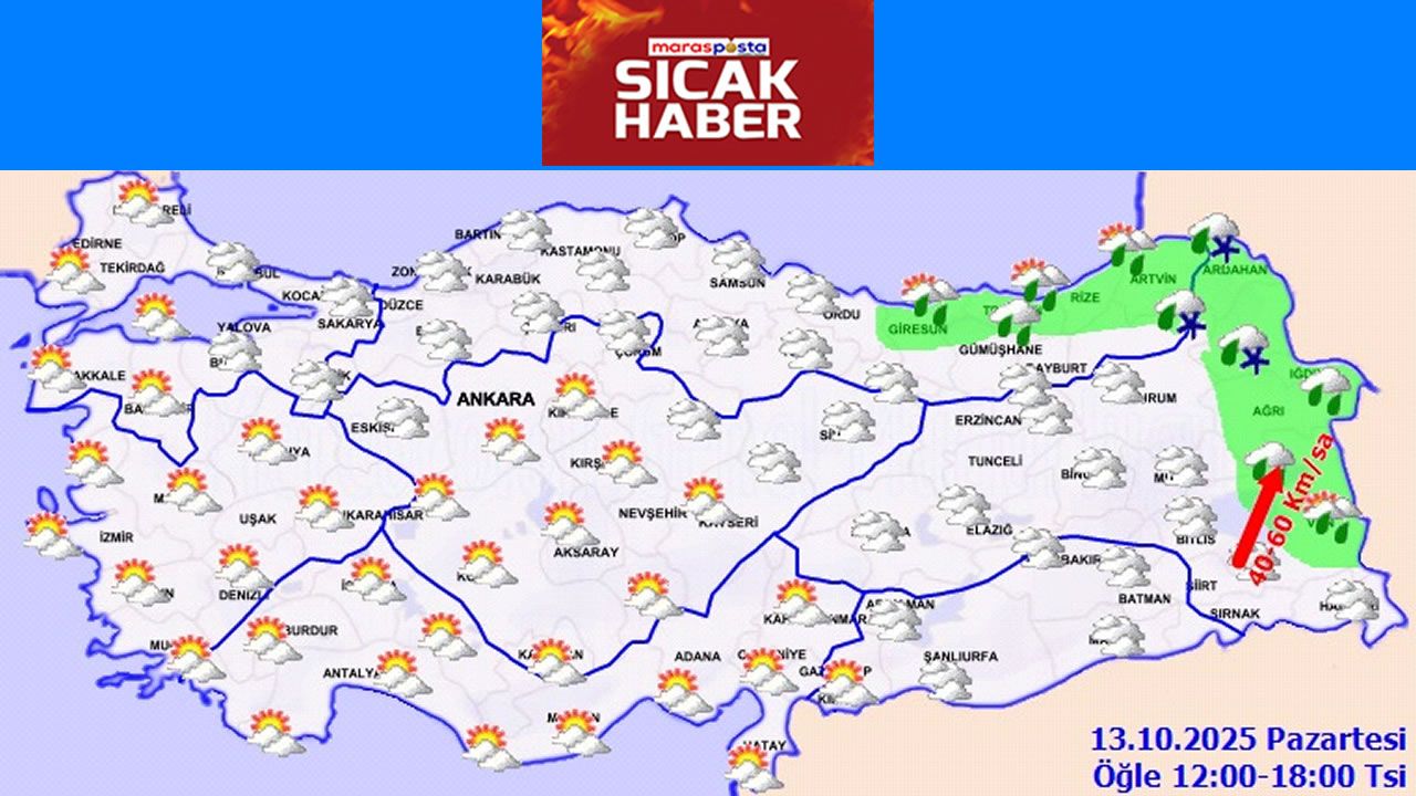 Parçalı ve çok bulutlu, bu akşam saatlerinde (Pazar) Kahramanmaraş ile Osmaniye çevrelerinin sağanak ve gök gürültülü sağanak yağışlı geçeceği tahmin ediliyor. Rüzgârın; bu akşam saatlerinde (Pazar) bölgenin iç kesimlerinde kuzeyli yönlerden kuvvetli olarak (40-60 km/saat) esmesi bekleniyor.