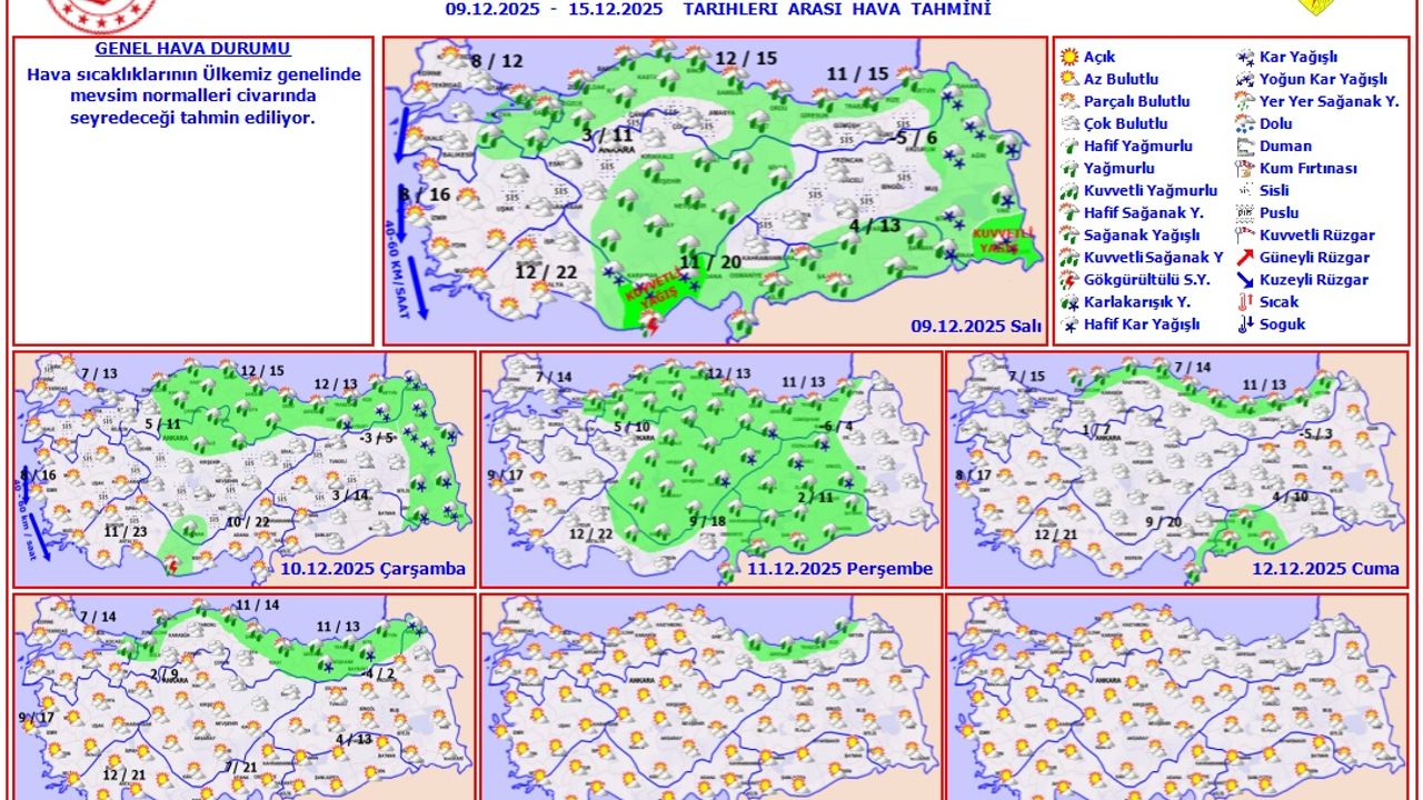 Akdeniz genelinde hava parçalı ve çok bulutlu olacak. Doğu Akdeniz ile Antalya’nın doğusunda aralıklı sağanak yağışlar görülecek.